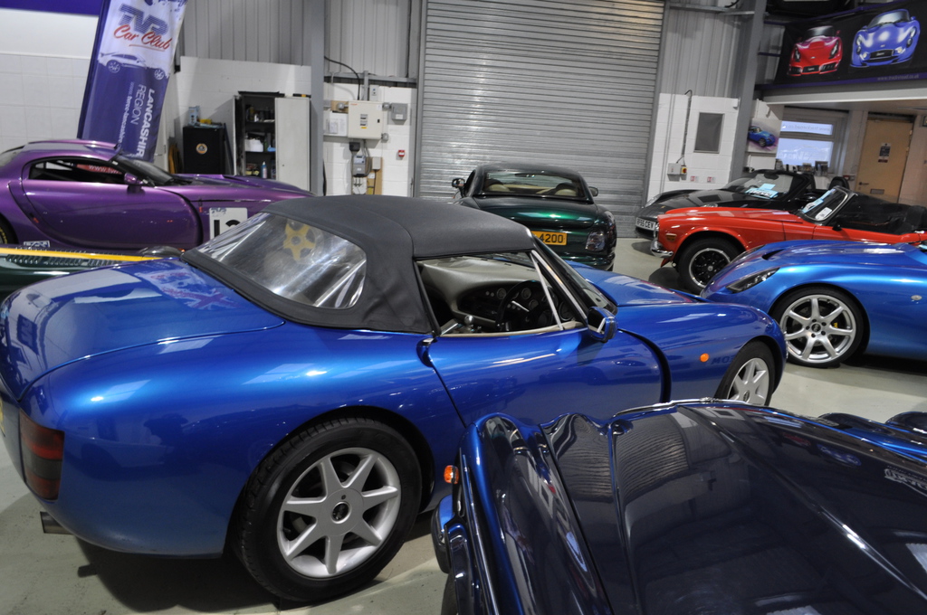 The car is presented in eye catching Olympic Pearlescent Blue, has a Blue Hood, with a contrasting grey half hide trim and Magnolia Dials. The currently recorded mileage is 59,816 which we believe to be genuine. The Outriggers were replaced in Nov 2013 by us.