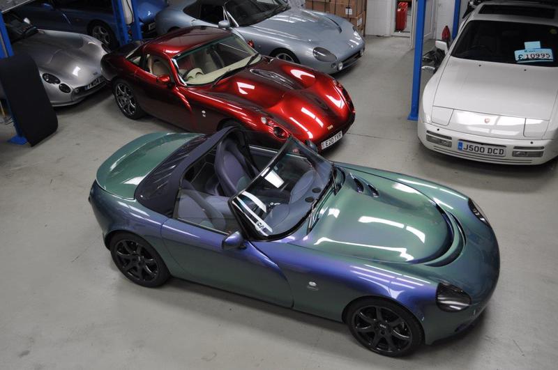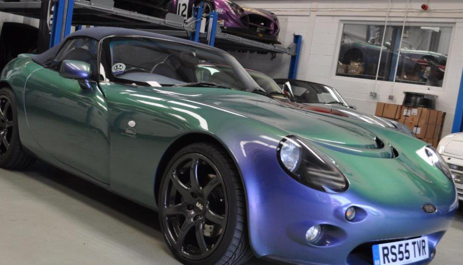 Here we have a very attractive and late TVR Tamora in Chameleon Blue, with Dark Anthracite Spiders. In fact it was one of the last to be built and registered. This Tamora is well known to us and has led a cherished life with only two owners from new, a comprehensive service history and low mileage.