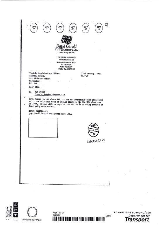 We have traced some history for the car and it raced as a 420 SEAC in the mid to late 80's until the car got banned from competing in class, at this point David Gerald TVR applied for road legal