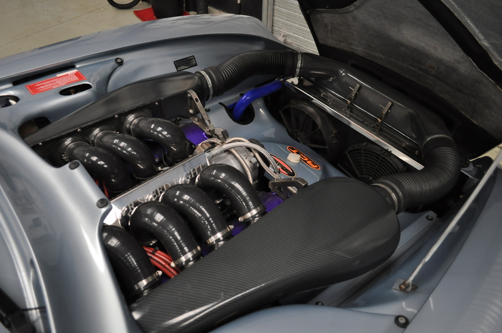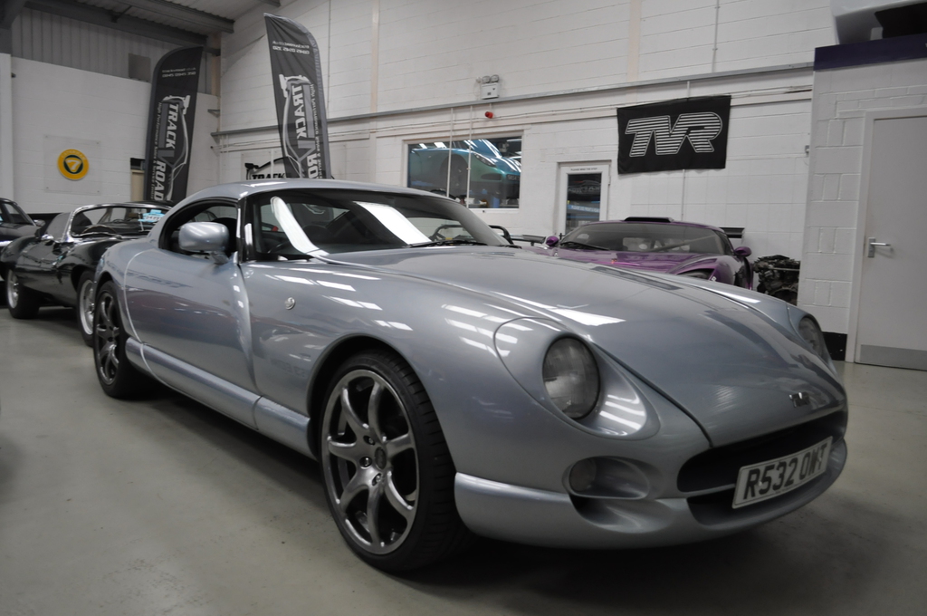 The car has a detailed engine bay with TVR Purple Rocker Covers, Braided Pipes, Stainless Injector cover and Stainless Radiator Cover.