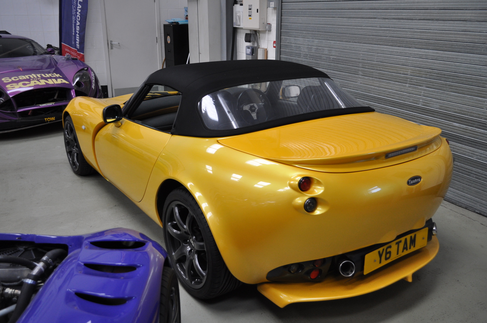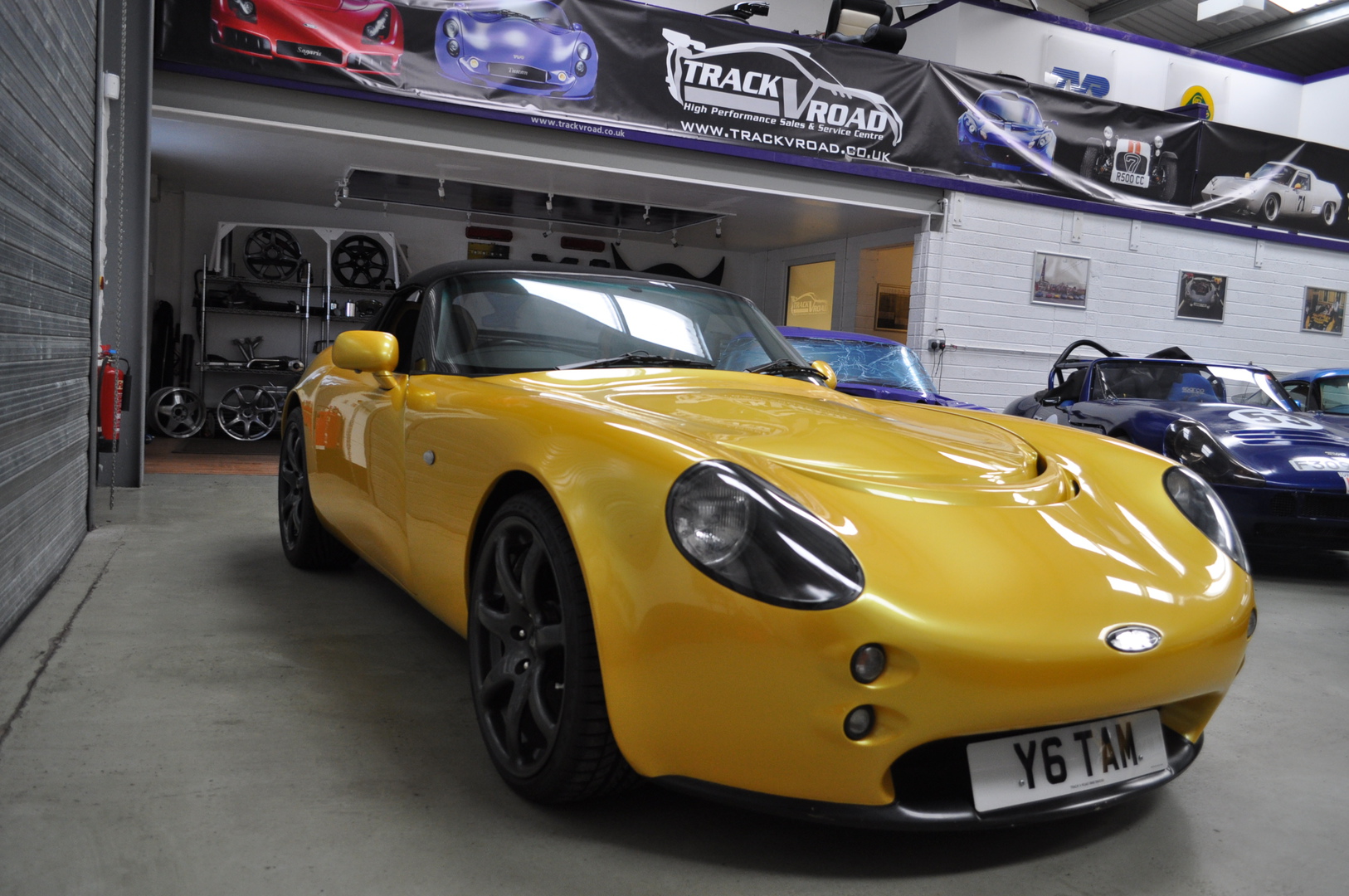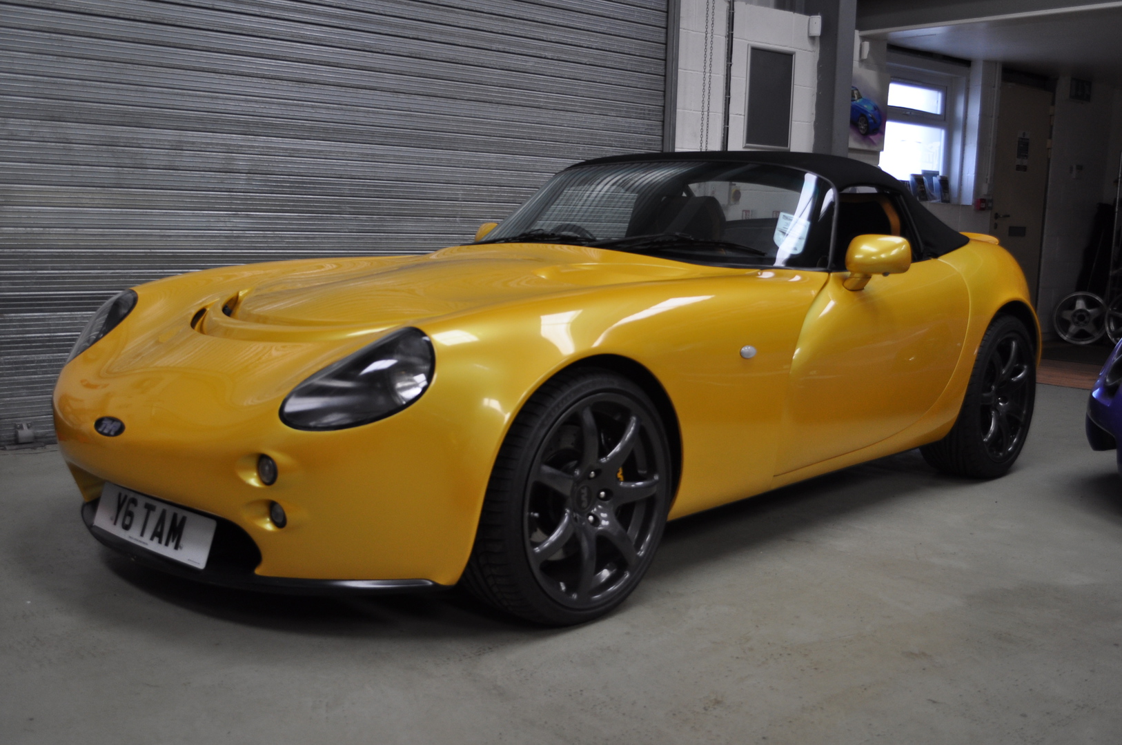 This car,which is the famous TVR Tamora press car, was first registered as TVR 100. It looks stunning finished in fabulous Halcyon Midas Pearl paintwork, with matching, one off, anthracite and yellow interior. The vehicle comes with a full service history and benefits from the following:-